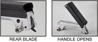 The groover’s precision guide wheels track in the seam to cut a groove for heat welding. Groove starting at the middle of the seam with the front blade, then up close to the wall with the rear blade. Groove curves and circles using a clip-on foot plate that allows the back end to slide. Blade depth is adjustable. Cuttings flow out under the handle, which pivots open for cleaning. All adjustments are made with a 1/8” hex key (included) that stores on the tool. Takes standard blades and comes with two No. 974 4mm blades. Comes with protective bag.